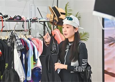 “今年销量比去年同期增长20%,尤其是家庭亲子装,不少计划去海边度假的家庭提前下单预订。”在兴城泳装时尚产业园运营基地,带货主播申妍介绍。兴城拥有泳装网店约4万家,进入暑期,线上销售更加火爆。