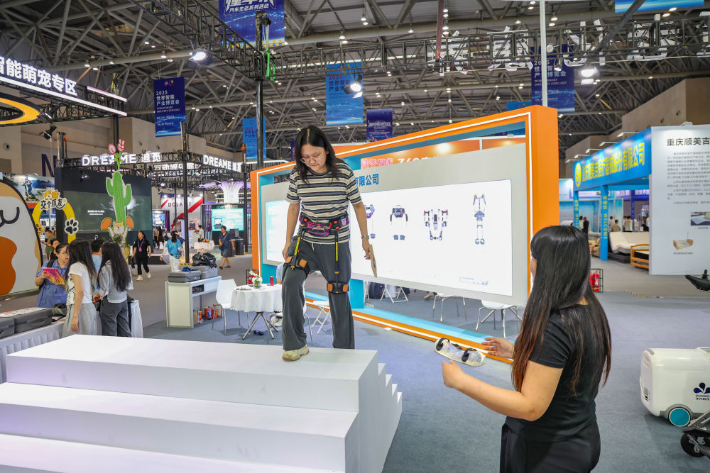 2025年9月5日,在重庆举行的2025世界智能产业博览会上,观众体验外骨骼机器人。新华社记者黄伟摄