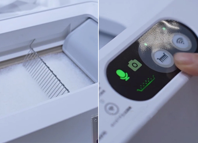 8月20日至24日,在上海举办的第27届亚洲宠物展,某参展企业展示的智能猫砂盆设备。