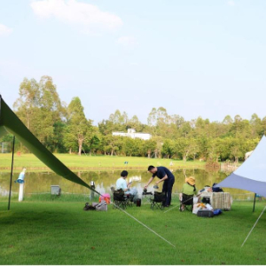 国庆中秋假期,广州的游客在天幕旁享受露营时光。新华社记者钟焯 摄