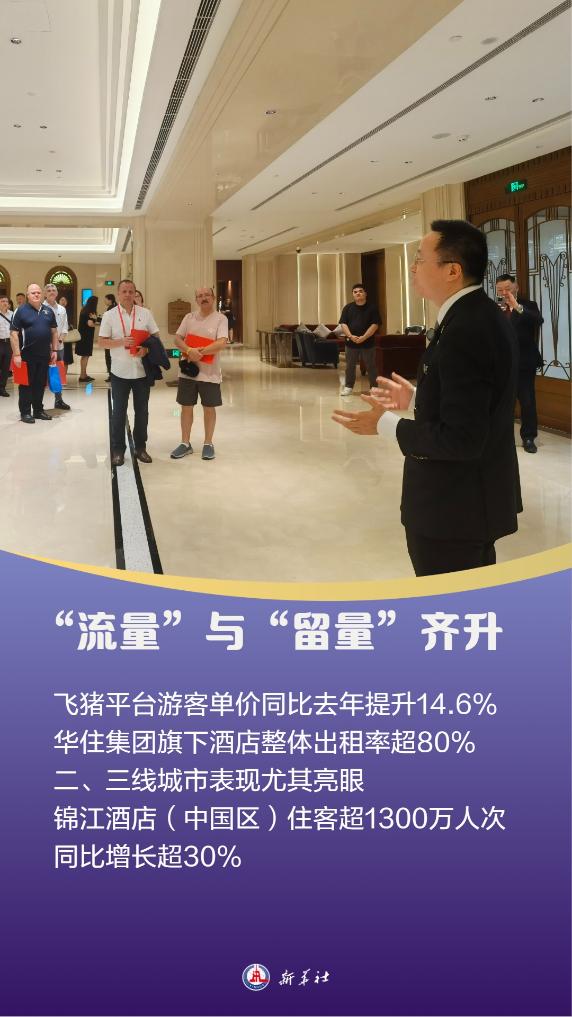 客流量增长的同时,国内旅游花费也创下新高。飞猪平台显示,假期游客单价同比去年提升14.6%。华住集团旗下酒店整体出租率超80%,二、三线城市市场表现尤其亮眼。锦江酒店(中国区)旗下酒店累计接待住客超1300万人次,较去年同期增长超30%。