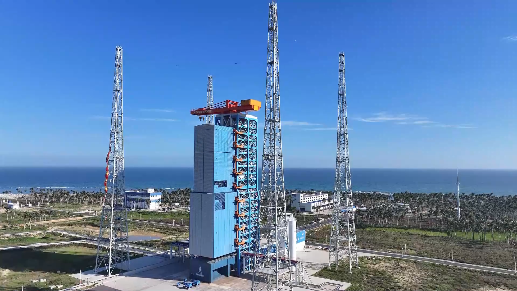 发射塔架拔地而起、耸入天幕。在海南文昌,一座商业航天发射场从开工到建成并成功实现首发,用时仅878天。
