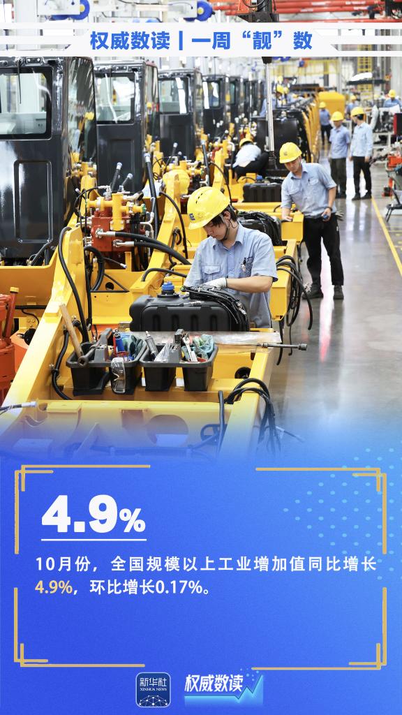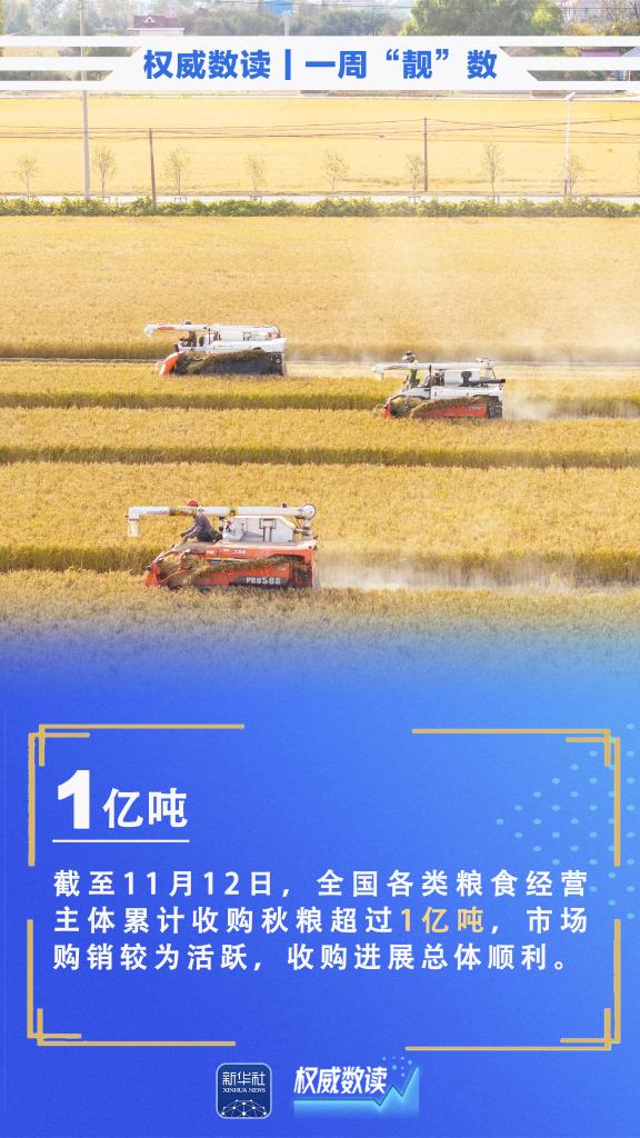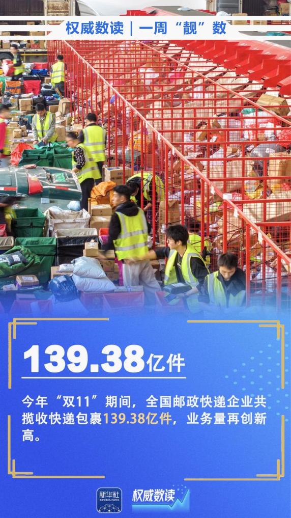 10月份,全国规上工业增加值同比增长4.9%;今年“双11”期间,全国邮政快递企业共揽收快递包裹139.38亿件,业务量再创新高;截至11月12日,全国各类粮食经营主体累计收购秋粮超过1亿吨……本周这些数据,最值得关注!