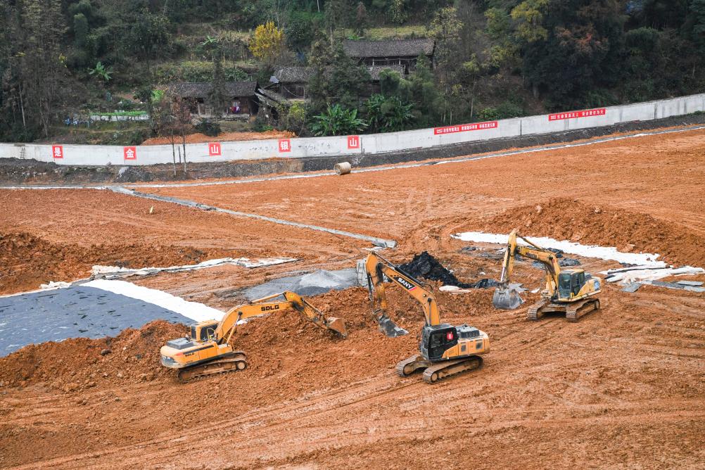 这是2023年12月15日在重庆市秀山县溶溪镇拍摄的武陵电解锰渣场综合治理和生态修复作业现场。新华社记者 王全超 摄