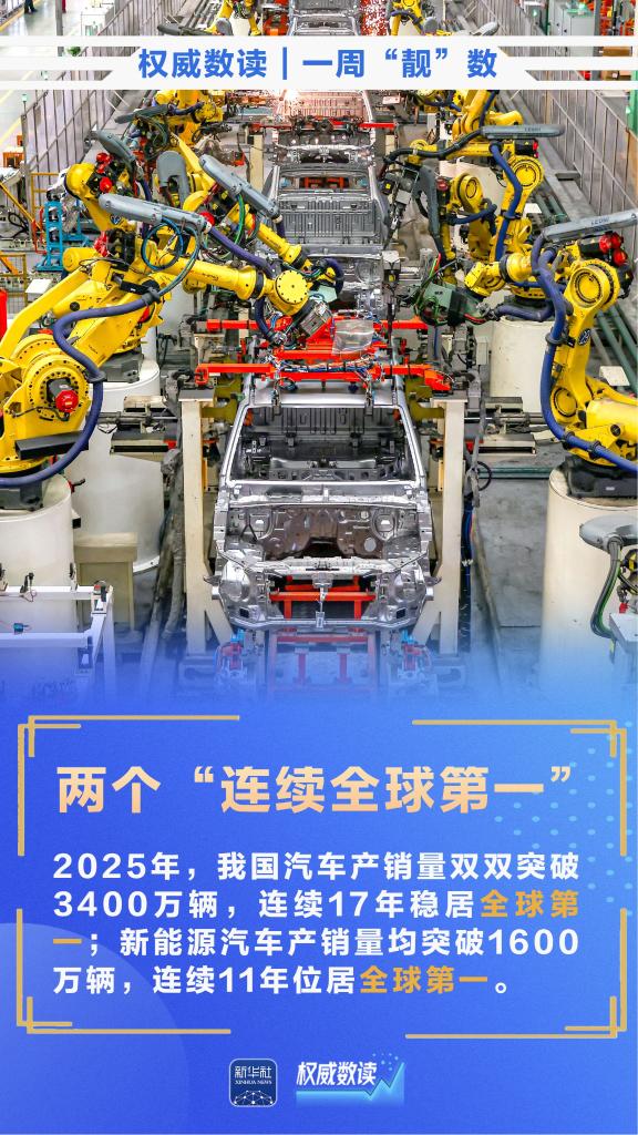 2025年,我国货物贸易进出口总值45.47万亿元,连续9年保持增长;汽车产销量双双突破3400万辆,连续17年稳居全球第一;全国营业性演出票房收入超616亿元……本周,这些数据最值得关注!