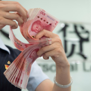 图为江苏省海安市一家银行的工作人员在清点人民币。新华社发(徐劲柏摄)