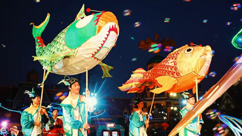 春节假期九天,傩舞、英歌舞、皮影戏、打铁花、板凳龙等十余项中国传统民俗表演在上海海昌海洋公园天天上演。