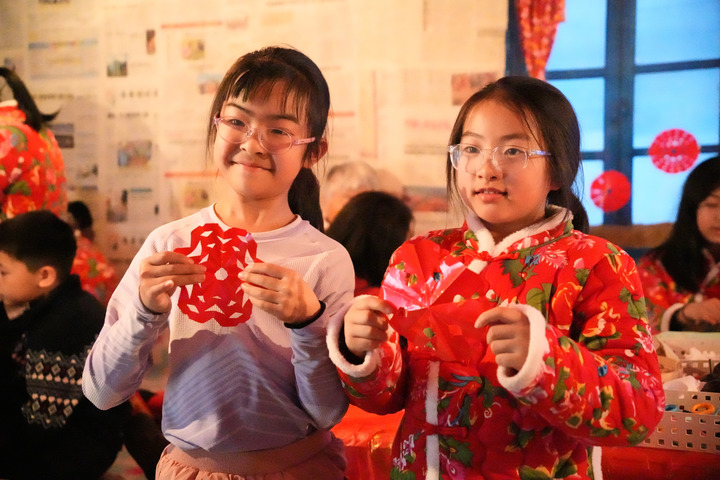 黑龙江省伊春铁力市的项老八农场农家院内,南方的“小金豆”在学习剪窗花,感受东北热炕的独特魅力。新华社记者 王祚 摄