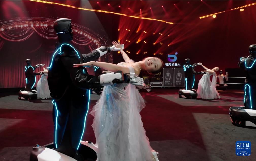 机器人与人在大型机器人晚会“机器人奇妙夜”上共舞(2026年2月8日摄)。新华社发
