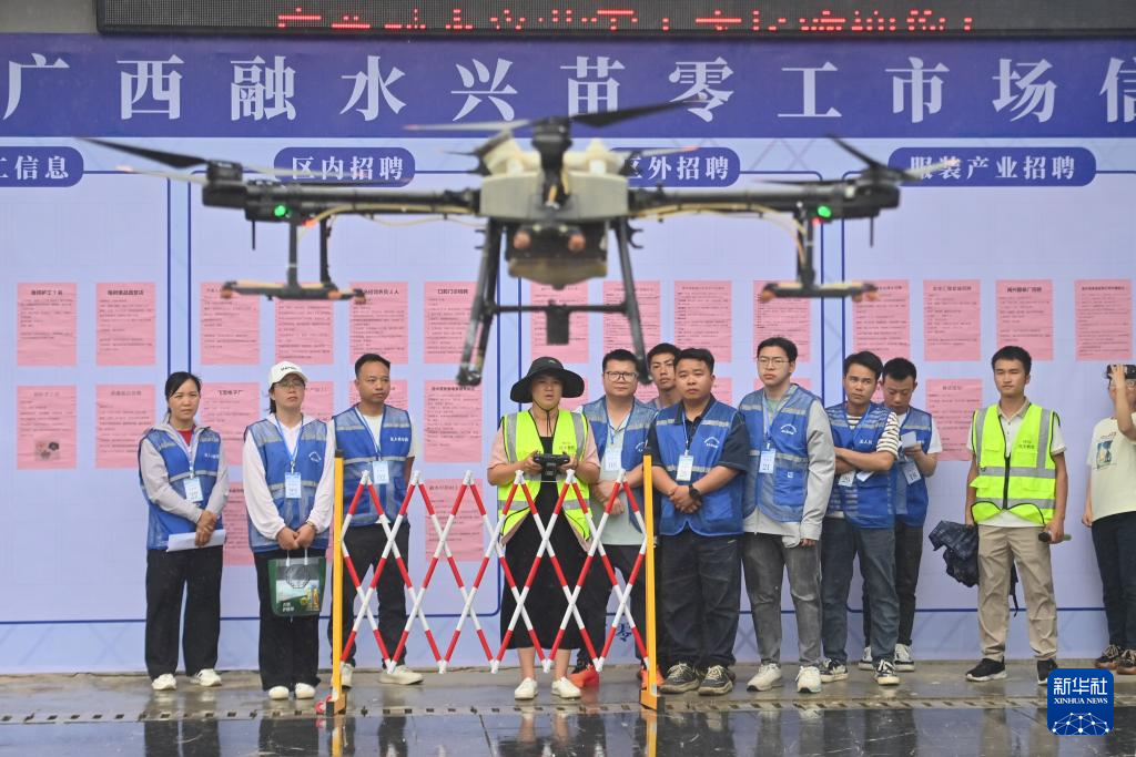 在粤桂协作·广西融水兴苗零工市场,工作人员在进行植保无人机培训(2025年5月15日摄)。新华社记者 黄孝邦 摄