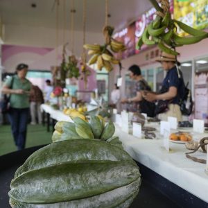 像手指一样细长的手指柠檬,掰开来竟是一粒粒像鱼子酱一样的果肉;只有花生大小的神秘果,小小一颗竟能影响人的味蕾;悬挂在藤蔓之上,像冬瓜一样大的巨型杨桃……这些奇特水果在世界热带水果之窗随处可见。