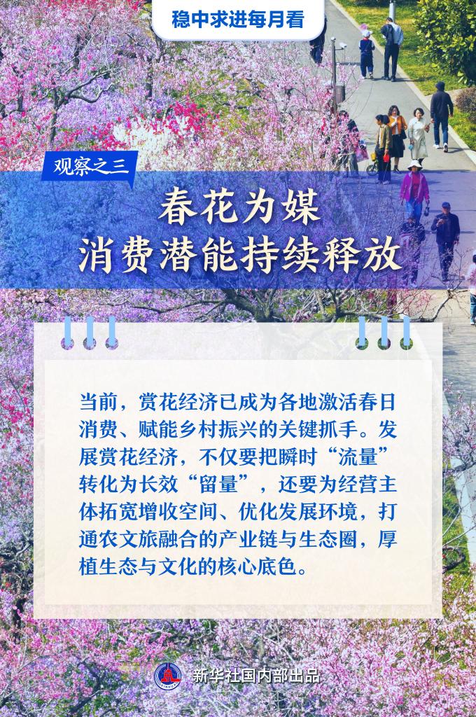 这个春天,上海举办樱花节,联动区域内重点商业综合体,打造“赏樱+消费”双引擎活动,激活区域春日消费新活力;新疆伊犁哈萨克自治州等地将给中小学生放春假,为配合春假推出系列优惠举措;四川广元市朝天区羊木镇东山村举办乡村音乐会、特色集市,打造“赏花+美食+文旅+消费”新业态;重庆璧山区七塘镇将军村立足七塘春季赏花与生态资源优势,打造七塘国风乡村文旅IP,让春季流量转化为乡村发展的长效动能……