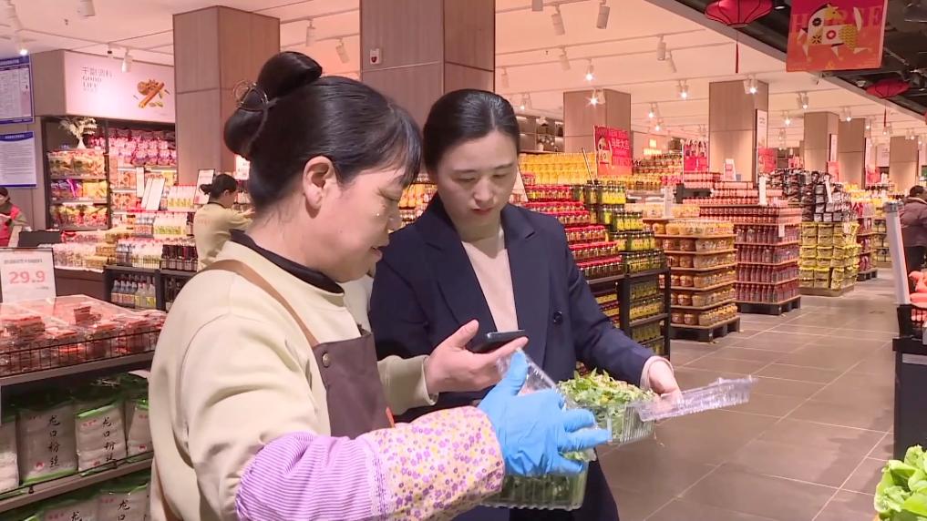 在河南省安阳市滑县一家大型生活超市生鲜区,白蒿、香椿等时令野菜整齐摆放,翠绿鲜嫩,吸引了不少市民挑选购买。