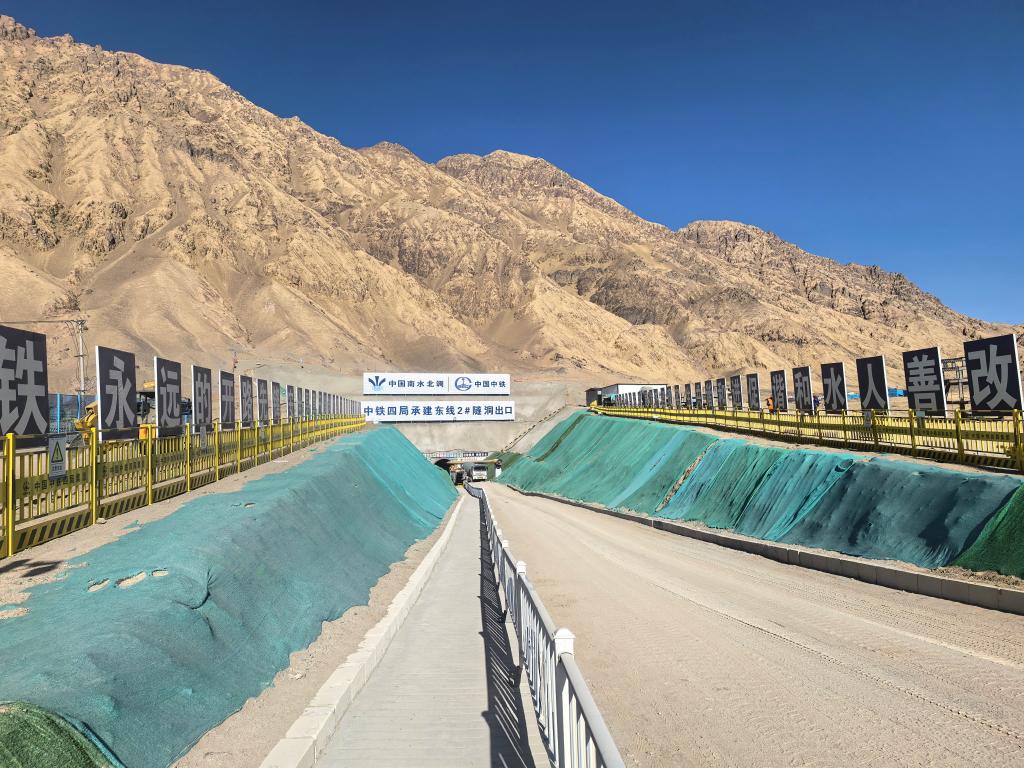 柴达木盆地水资源配置一期工程东线2#隧道出口段在进行施工作业。新华社发