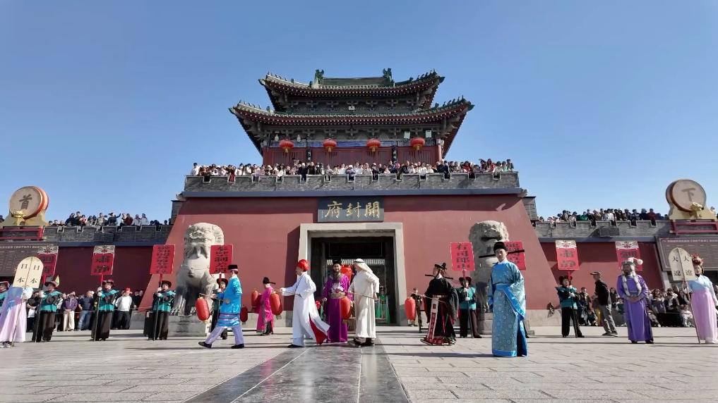 河南开封各景区将清明习俗与宋文化深度融合。在清明上河园景区,游客可在“大宋簪花游园会”参与互动赢取鲜花。
