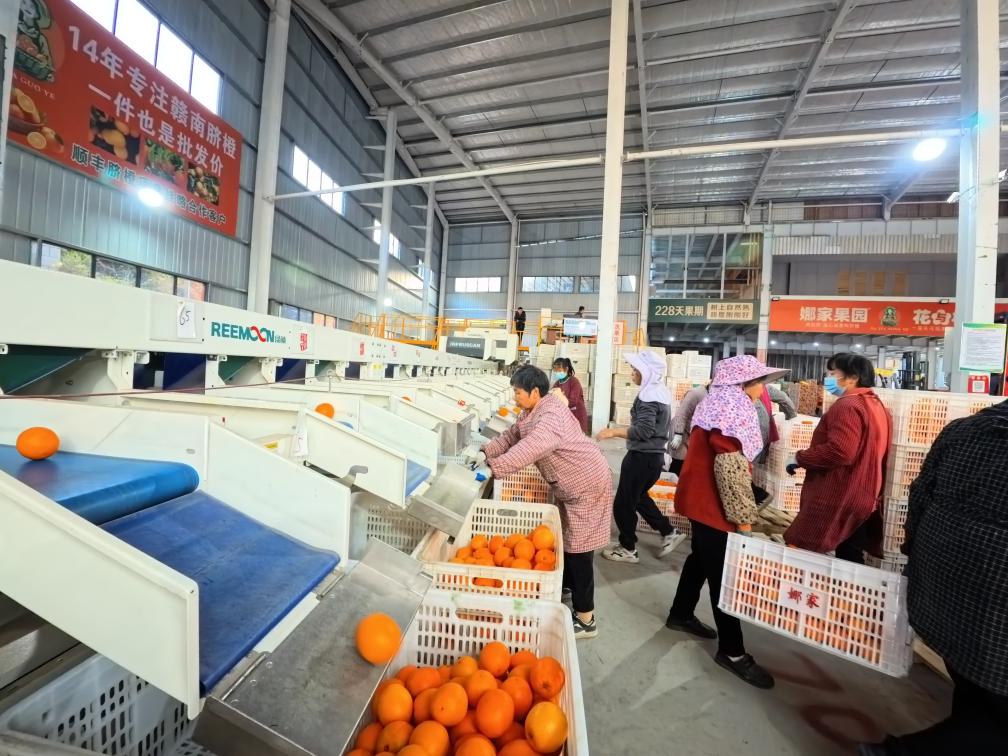 在江西省赣州市安远县橙皇现代农业发展有限公司的现代化智能分选车间,果径65至100毫米的脐橙鲜果,正源源不断地通过智能设备,被精准筛选为24个等级。