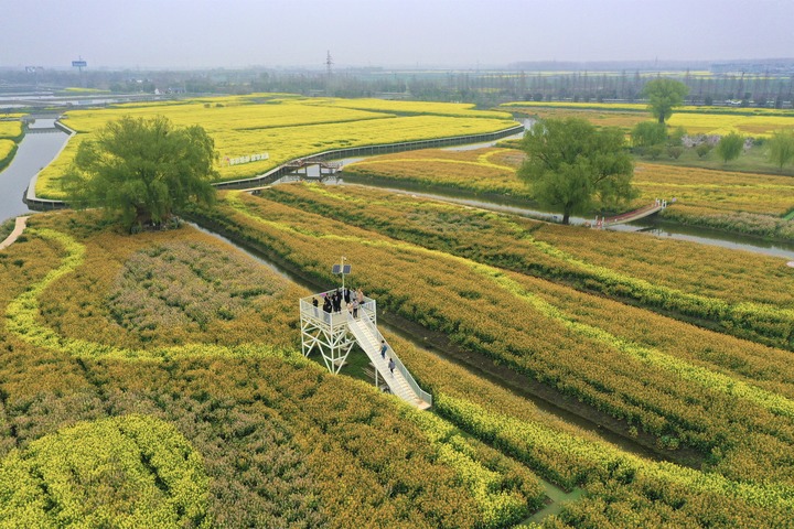 在江苏省泰州市海陵区拍摄的油菜花田(无人机照片)。新华社发(刘臻睿 摄)