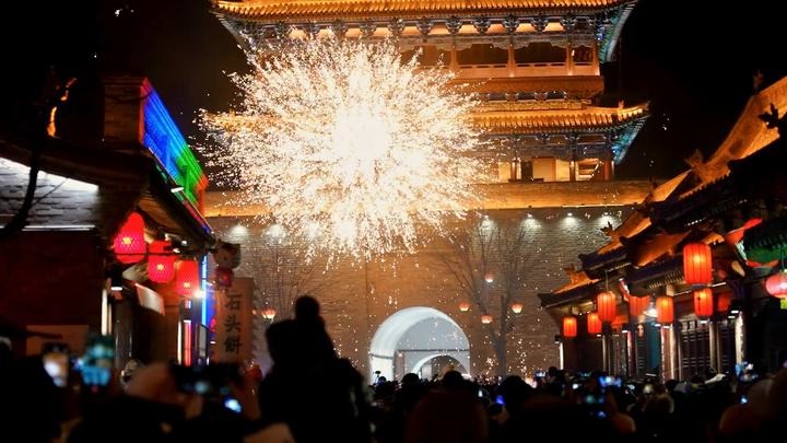 古城夜经济也是活力满满,《遇见秀容》、打铁花等演出吸引大量游客,夜晚的古城,游客数量不减反增。