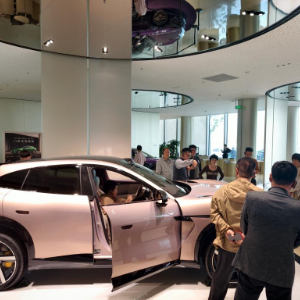 4月21日,在小米汽车工厂参观的游客正在试驾车辆。 新华社记者吉宁 摄