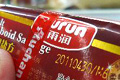火腿切片加工的过程中,发现这块方火腿中夹杂着包装塑料膜和两个金属卡扣。 [详细]