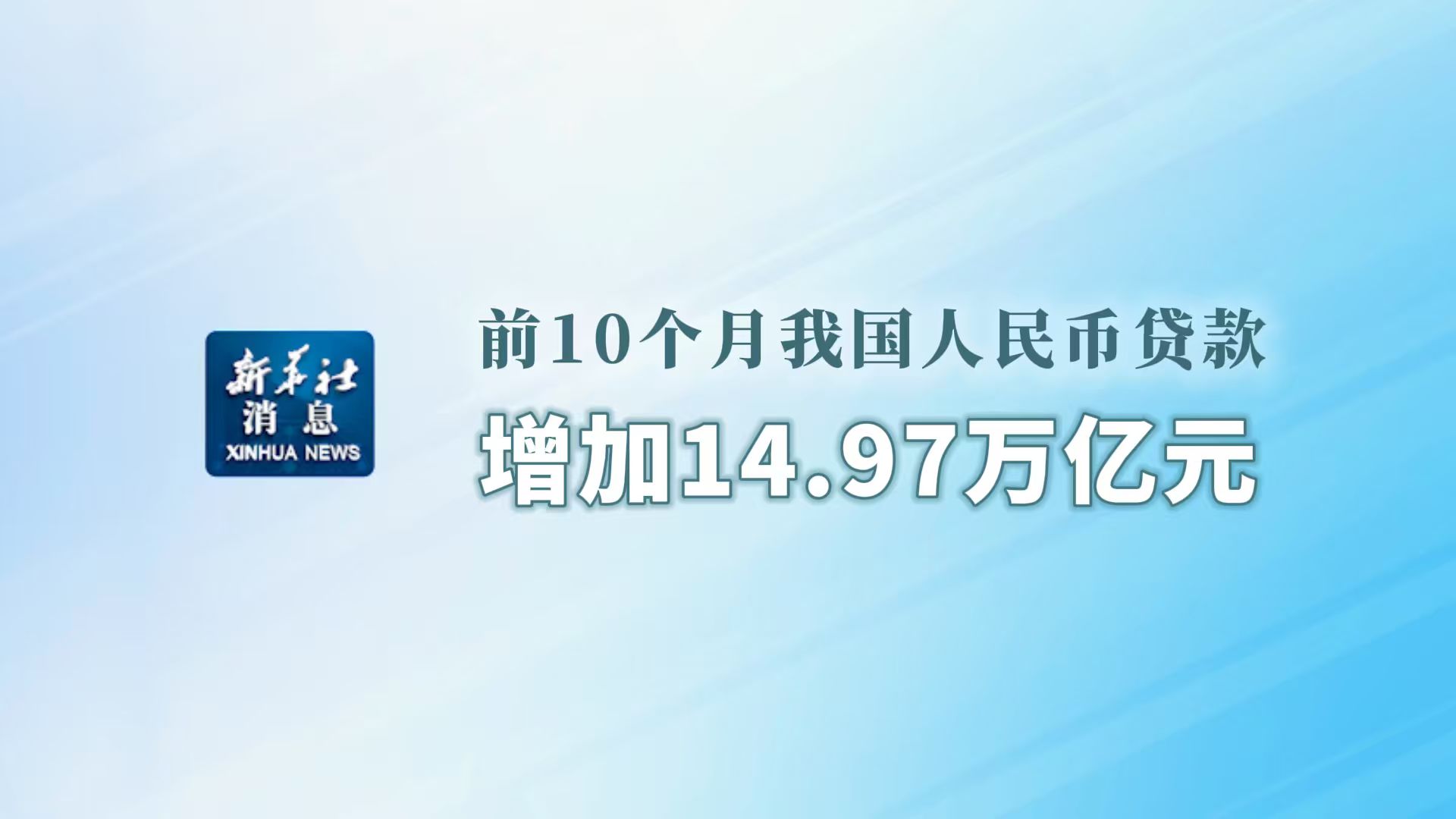 新华社消息丨前10个月我国人民币贷款增加14.97万亿元