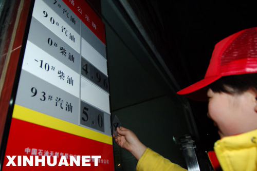 中石化上海地区44个加油站2009年1月1日跟进降价