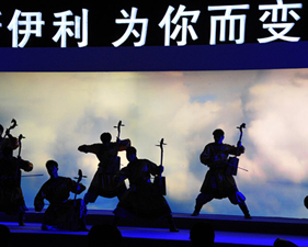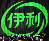 整个标识令人耳目一新,体现了一种动态的平衡,即伊利所倡导的“绿色产业链”中人与自然界的和谐共生。
