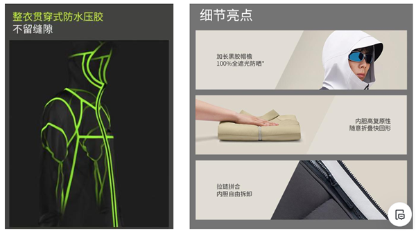 蕉下作为轻量化户外品牌,其核心竞争力和品牌壁垒来自于沉淀十年的包括AntiTec九大防护科技、轻量化科技、轻量化设计、轻量化套组在内的技术储备,以及轻量化品牌战略升级后,拉通产品、内容、场地形成的核心竞争力。而此次推出的蕉下冲锋衣,正是全季节、全人群、全品类产品能力的集中展示。