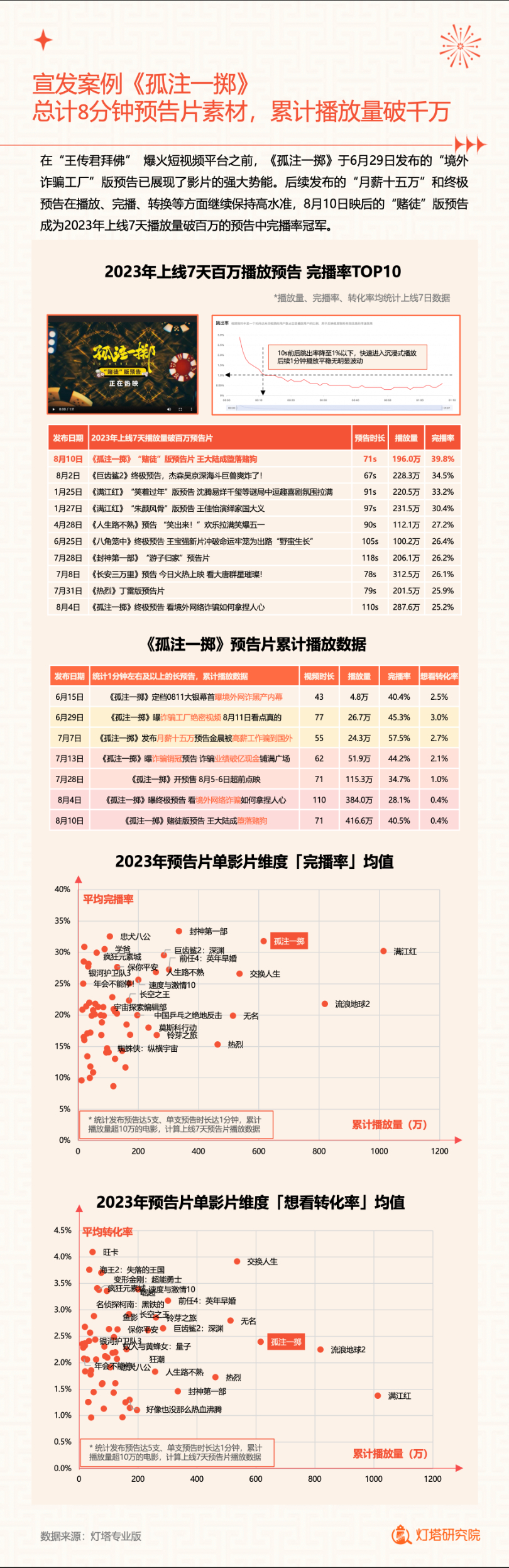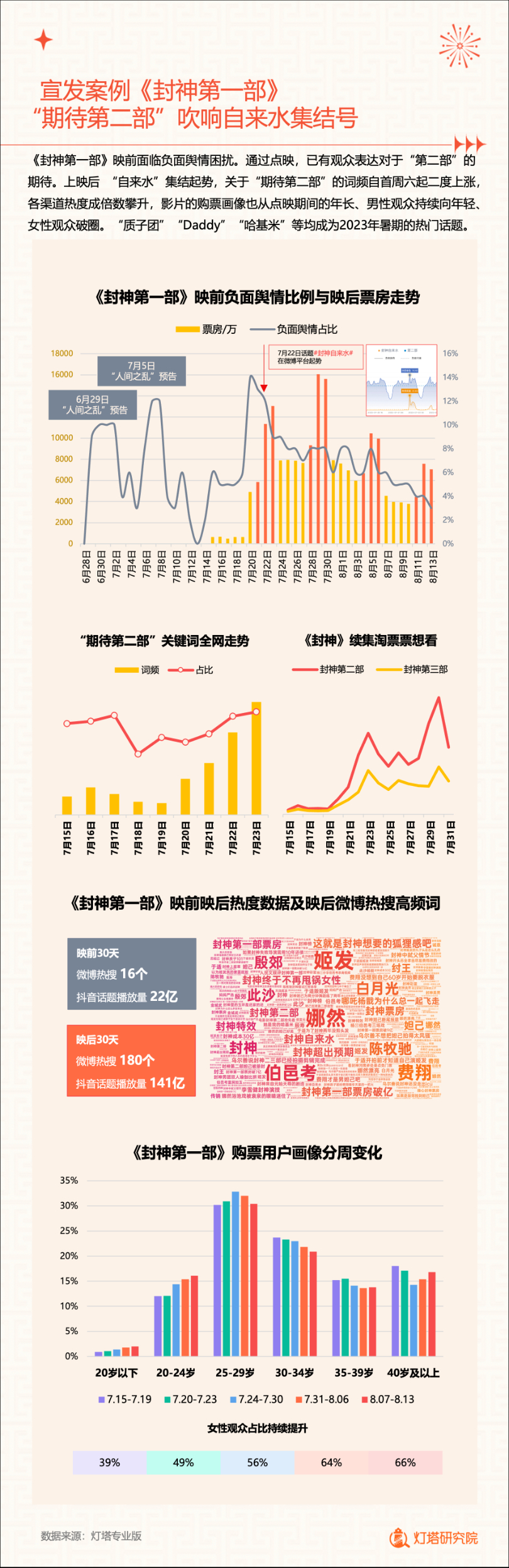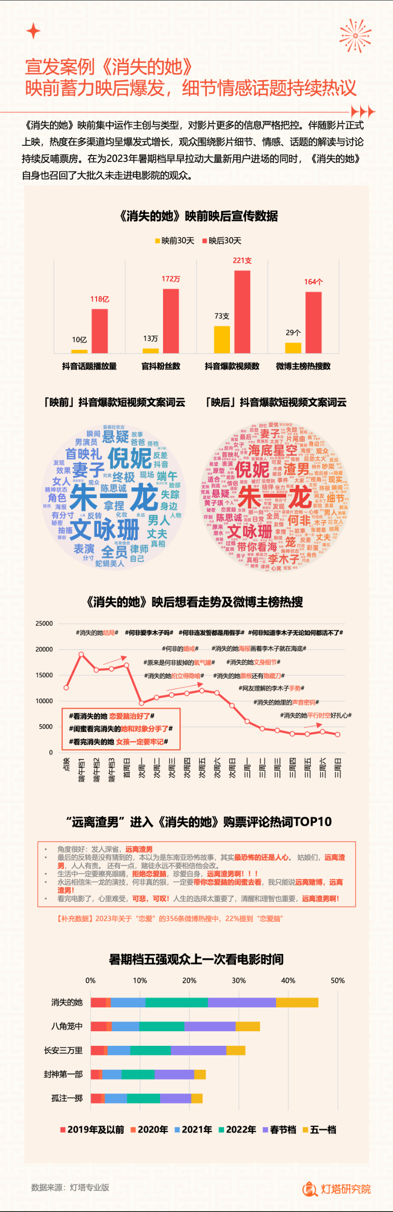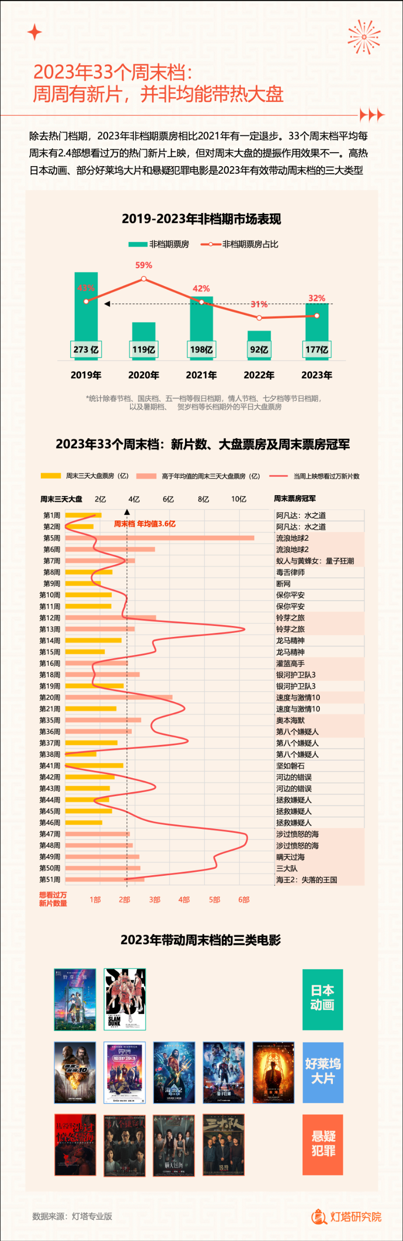 新华网北京1月2日电(记者闫雨昕)2024年1月1日,灯塔研究院联合新华网发布《2023中国电影市场年度盘点报告》(以下简称“报告”),从市场核心数据、观影消费习惯、热门档期与周末档、宣发新风向、用户画像等方面进行分析。