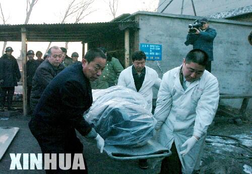 唐山矿难抢险队员运离遇难者遗体