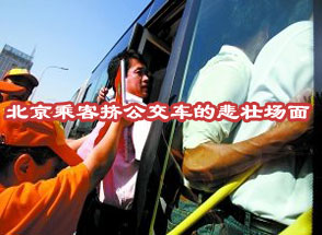 组图直击:北京乘客挤公交车的壮观场面