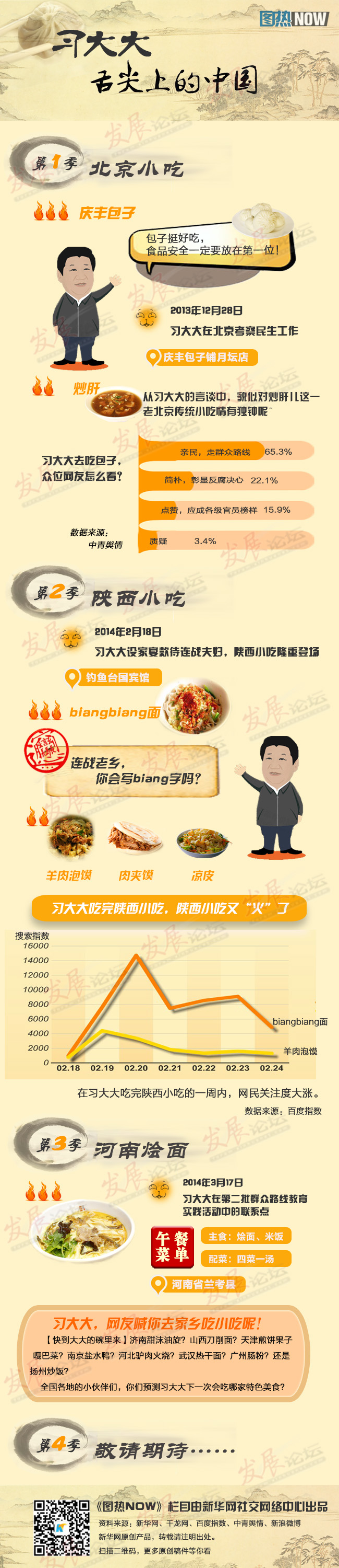 从庆丰包子到河南烩面,习大大的舌尖,尝火了一批简单实惠又不乏文化底蕴的中华美食。究竟还有多少这样的美食会一波波火起来?各级官员,快来学习习大大清新简约朴实亲民的“食风”吧!