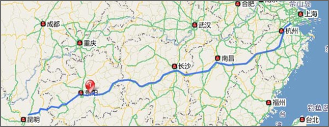 上海-杭州-金华-衢州-上饶-鹰潭-南昌-宜春-株洲-湘潭-邵阳-怀化-麻江-贵阳-安顺-曲靖-昆明