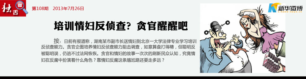 情色反腐百发百中? 随着二奶们一个个漂亮的迂回穿插,一个个潇洒的短传配合,一个个精彩的底线传中和狡黠老道的反越位战术,贪官们被射的是丢了官位、丢了金钱。情妇反腐,这是反腐进步了呢,还是腐败进步了?