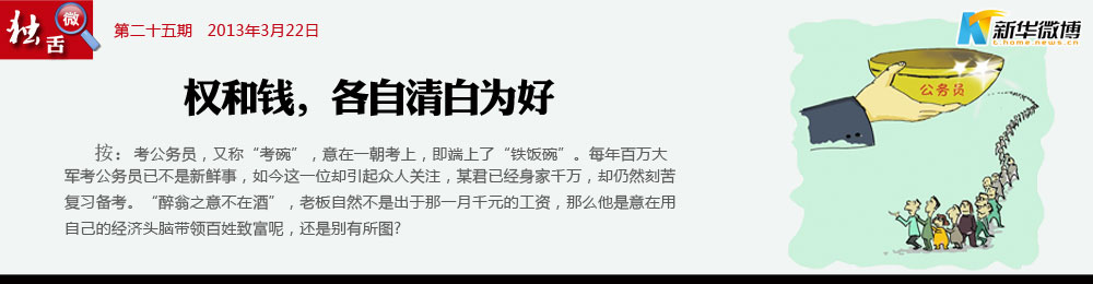 如果千万富翁考上公务员 千万富翁考公务员折射的是某些政府部门“门难进、事难办”的现状,也反映出当下企业的生存无奈。假设他有朝中举,好的结果是政府吸纳了一名懂经济的得力干将,坏的结果则是又多出一个亦官亦商的“红顶商人”。