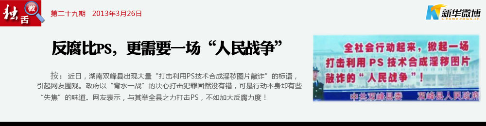 PS高手们,你们长点心吧 国人ps技术炉火纯青,可是给国人带来无限欢乐的P事最近却摊上“大事”了。湖南双峰正掀起一场打击利用PS技术合成淫秽图片敲诈的“人民战争”,并且志在必得,PS高手们,你们长点心吧!