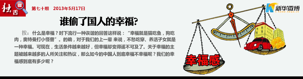 幸福是“比较出来的” 在电影《求求你,表扬我》中,记者王志文问:什么是幸福?农民工范伟回答:幸福就是我饿了,看见别人拿了个肉包子,那他就比我幸福;我冷了,看见别人穿了一件厚棉袄,那他就比我幸福;我上茅房,只有一个坑,你蹲了,你就比我幸福。