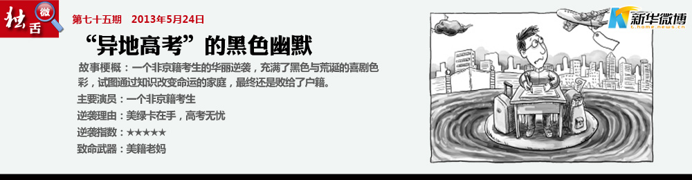 【这是一片神奇的土地】 你是外地人,没资格在北京高考,但突然你成了美国人,你就可以参加了。这是中国这个困难模式生存游戏里的后门BUG。