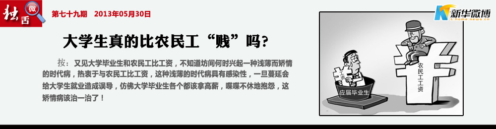 【你还觉得他们工资高吗?】 现在有讨论农民工的工资比大学生的起薪都了,有很多人觉得有点不可思议,大学生就应该比农民工多赚吗?农民工的工资包含了什么?他们现在比大学生多一点点,可是随着时间推移呢?他们赚的是血汗钱、青春钱。大学生呢?