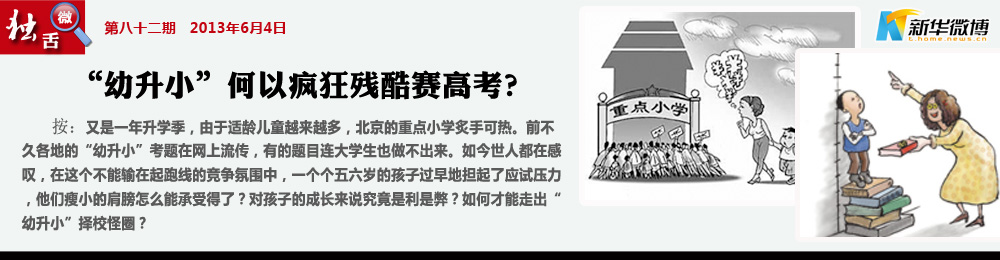 【孩子精神分裂】 A校搞面谈,B校考奥数,C校看重才艺,D校要英语会话,孩子们考前往往要精神分裂好长一段时间,学生进一次校门就得背一次考试圣经。