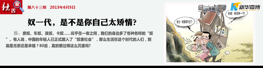 【孩奴】 80后父母一生都在为子女打拼、为子女忙碌、为子女赚钱。当上了孩奴的人,不敢生病,不敢高消费,不敢轻易换工作。