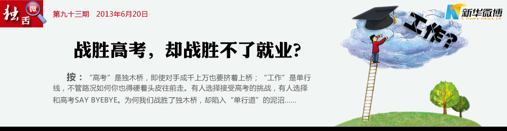 花费了高昂的学习成本、浪费了宝贵的年华、经历了非人的摧残,结果战胜了高考,却陷入“就业难”的泥沼。当很多大学生面临毕业就失业、起薪比农民工还低的时候,曾一直萦绕在耳边的“高考成功、人生美满”的话语,怎么变成了一记耳光、一个笑话?