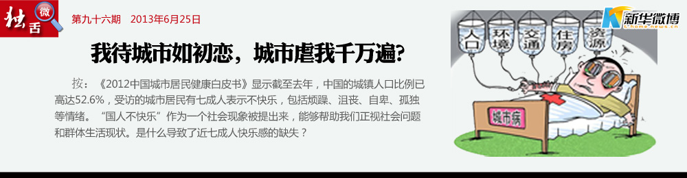 城市病了 光污染、空气污染、噪音污染、热岛效应、食品安全、交通障碍、高空抛物、楼宇消防电梯……吸的是雾霾,吃的是不放心食品,高起的物价,昂贵的医疗,上学难,就业难,国人能健康吗?能快乐吗?