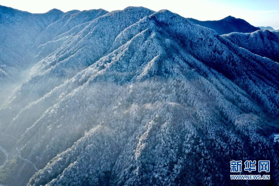 1月8日,武夷山国家公园腹地的桐木关附近,群山被白雪覆盖(无人机照片)。