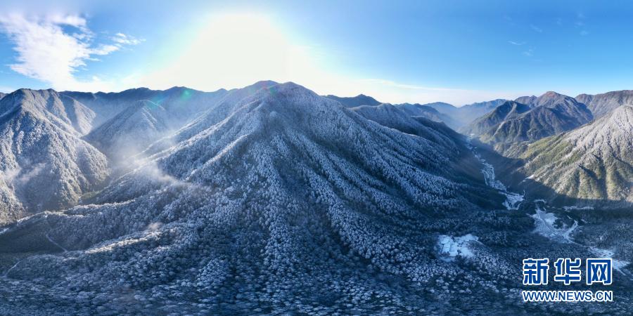 1月8日,武夷山国家公园腹地的桐木关附近,群山被白雪覆盖(无人机照片)。