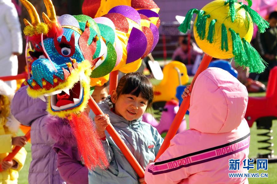 近年来,河北省乐亭县教育部门挖掘传统乡土游戏的独特魅力,在辖区内多所小学、幼儿园倡导开展舞龙舞狮、骑竹马、抬花轿、划旱船、滚铁环、踩高跷等益智健体的乡土游戏,让孩子们在回归传统中畅享多彩快乐童年。新华社记者 牟宇 摄