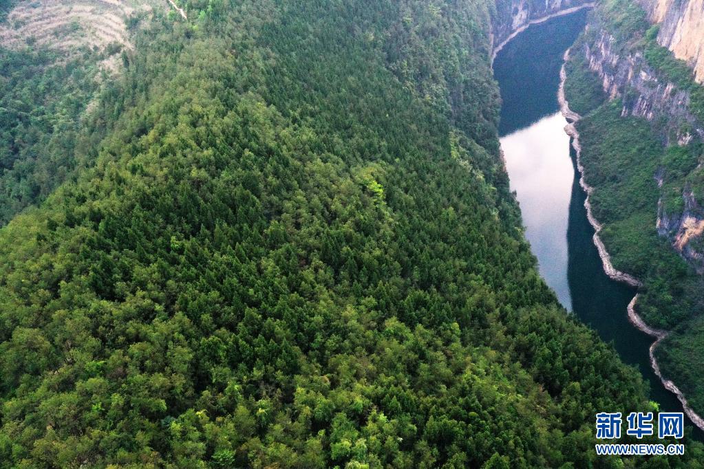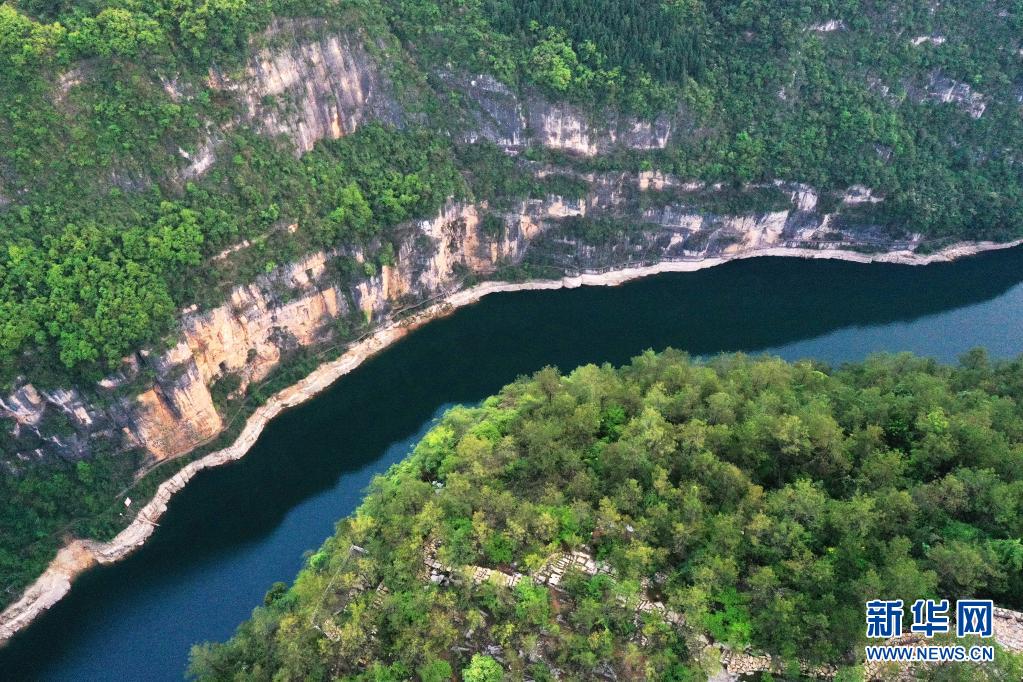 小三峡一景(无人机照片)。仲春时节,位于重庆市巫山县境内的小三峡呈现出“一江碧水、两岸青山”的秀美景象。新华社记者 王全超 摄