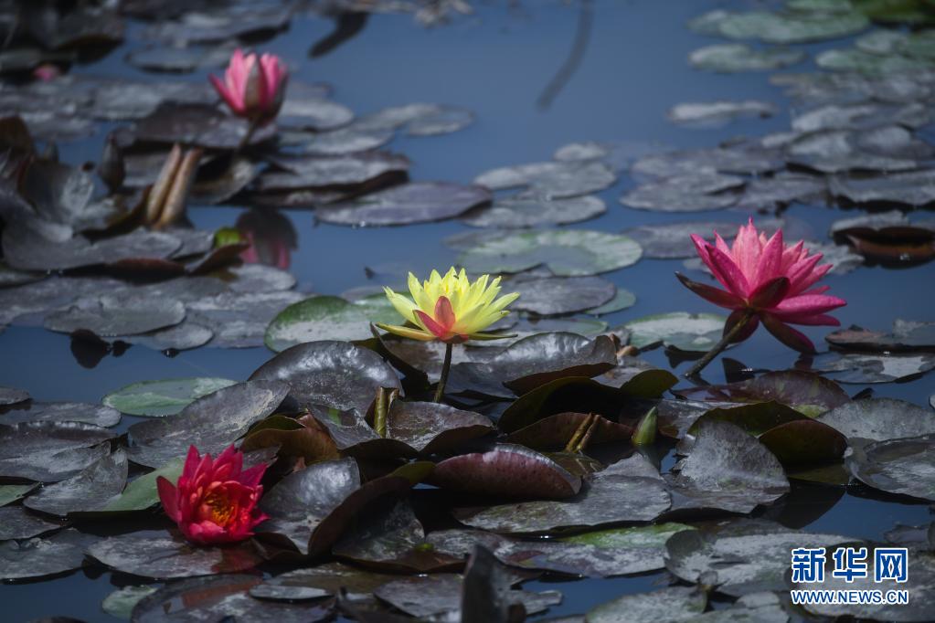在东林镇东方村,水田里种植的睡莲盛开(5月7日摄)。