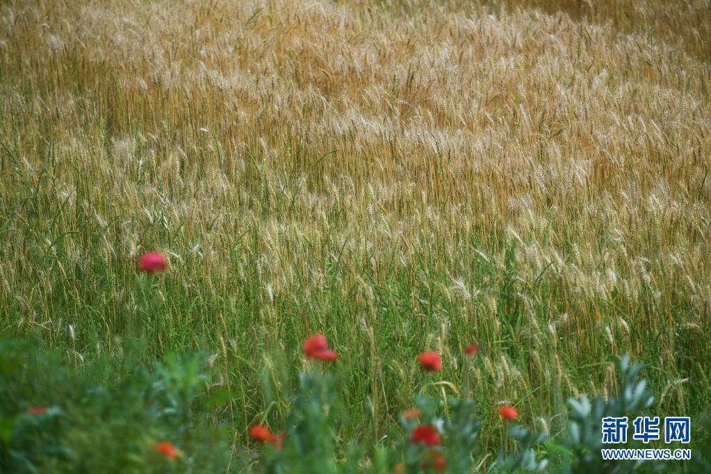 在东林镇保永村,麦田里的野花和即将收获的小麦(5月7日摄)。