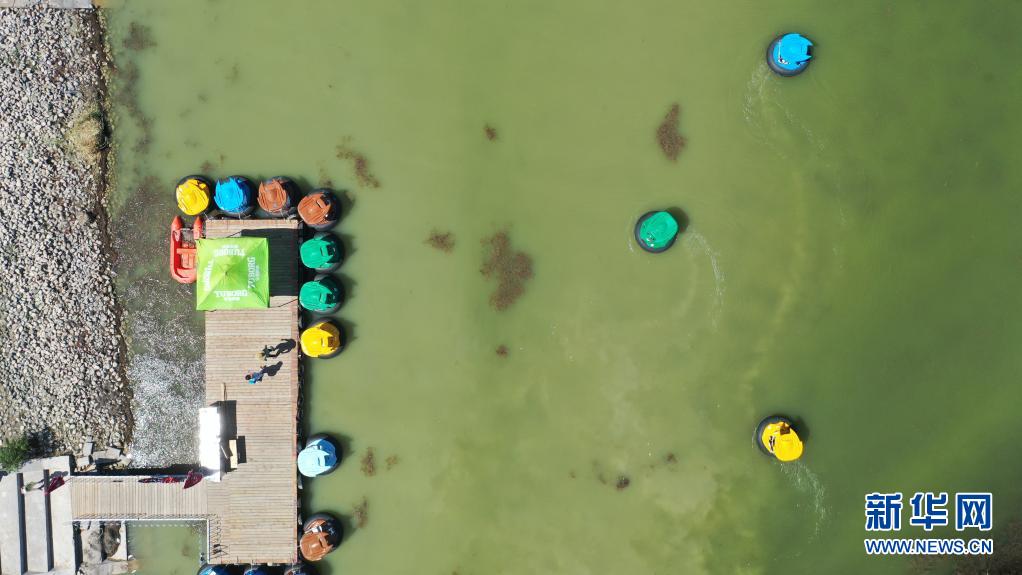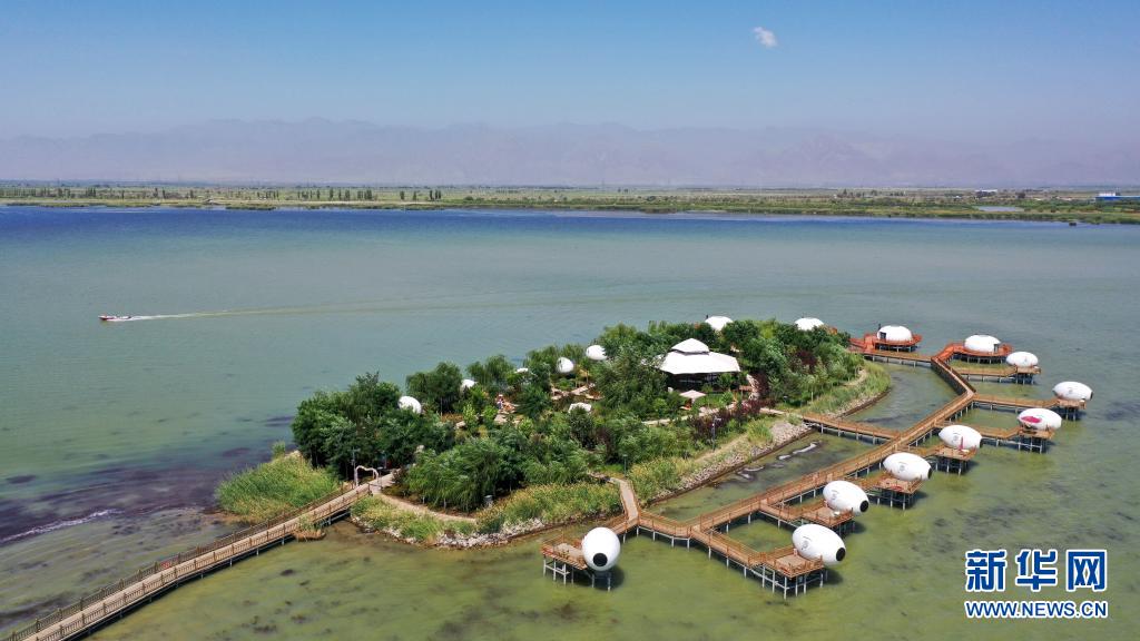 夏日时节,地处宁夏石嘴山市平罗县的沙湖景区内,苇绿沙黄、碧波荡漾。集荒漠、草原、湿地、湖泊等生态系统为一体的沙湖景区,享有“中国十大魅力湿地”称号,以其半沙半湖的独特自然风光享誉国内外。新华社记者 王鹏 摄